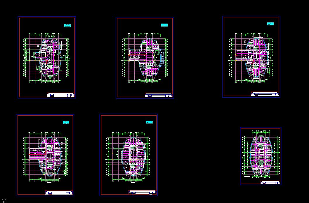 3、建筑物地下室、标准层、顶层、平面图,厨房、卫生间平面图。