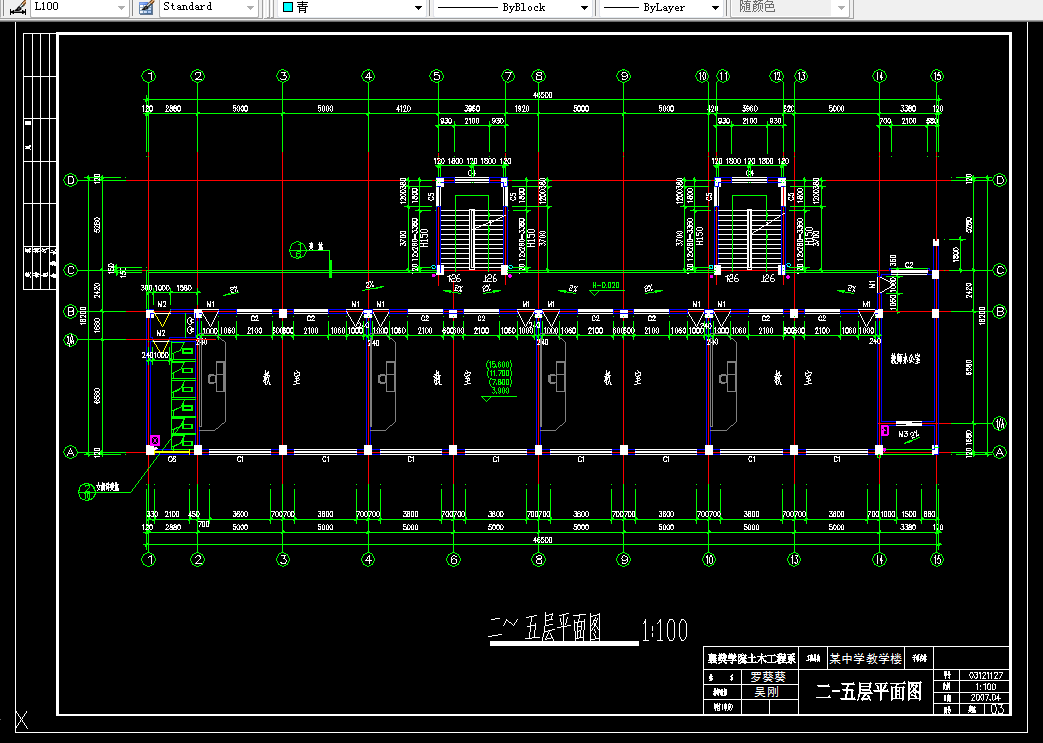 建筑类型:六层中学教学楼,框架填充墙结构。