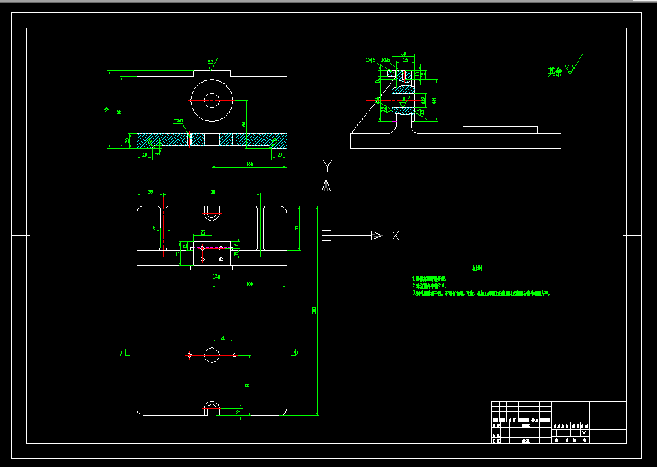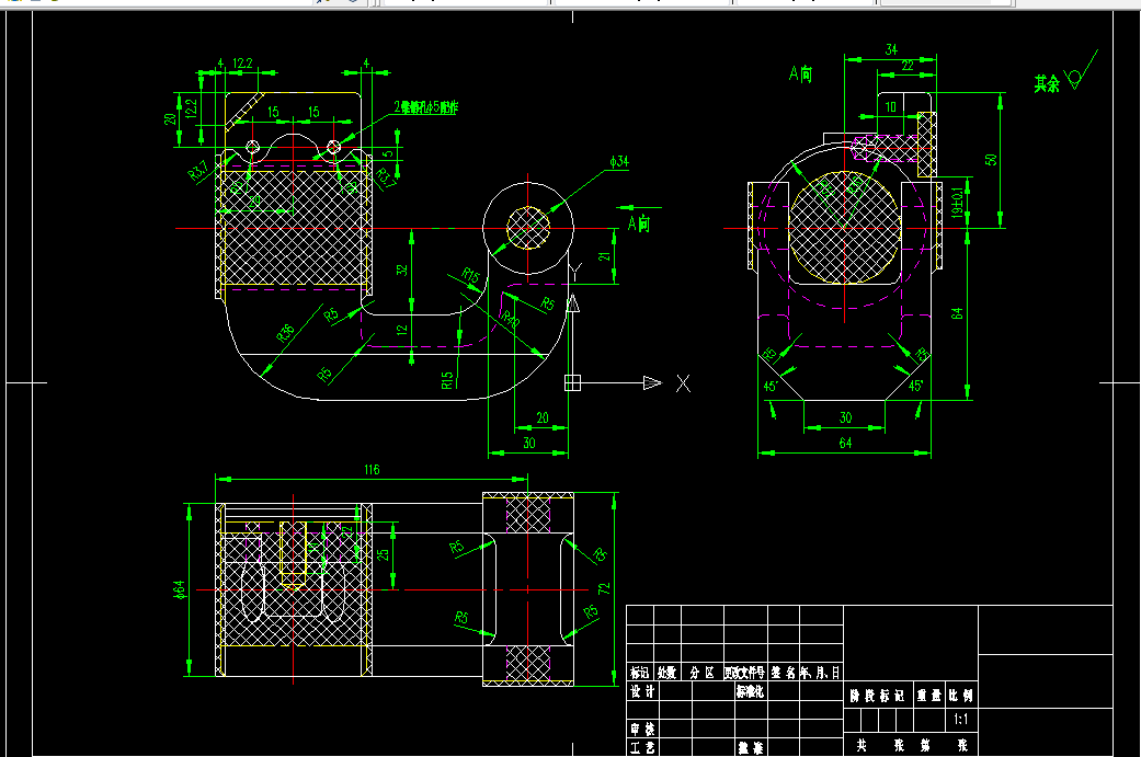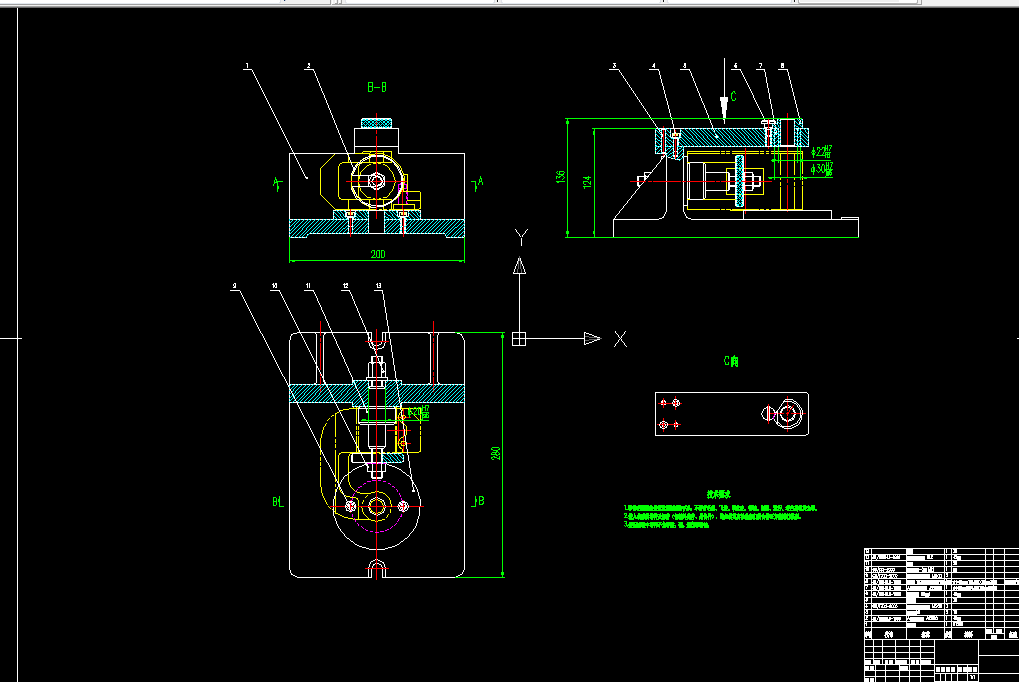 (C620)轴拨杆加工工艺规程及钻孔的夹具设计是包括零件加工的工艺设计、工序设计以及专用夹具的设计三部分。在工艺设计中要首先对零件进行分析,了解零件的工艺再设计出毛坯的结构,并选择好零件的加工基准,设计出零件的工艺路线;接着对零件各个工步的工序进行尺寸计算,关键是决定出各个工序的工艺装备及切削用量;然后进行专用夹具的设计,选择设计出夹具的各个组成部件,如定位元件、夹紧元件、引导元件、夹具体与机床的连接部件以及其它部件;计算出夹具定位时产生的定位误差,分析夹具结构的合理性与不足之处,并在以后设计中注意改进。