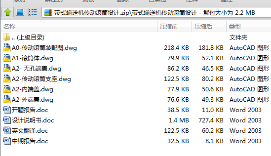 本设计首先对带式输送机滚筒结构的设计计算方法进行了分析研究,修正了有关计算公式,完善并统一了设计计算内容,对带式输送机传动滚筒进行了严谨的数学推导,在大量的参考了国内该部分的相关教材和资料的基础上,结合了一定的实践而编写的。