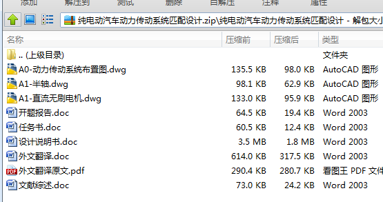 首先,本文对电动汽车的基本结构、工作原理作了简单介绍,对电动汽车的国内外发展趋势做了扼要分析;其次,对电动汽车动力传动系统布置方案进行了设计,且对电动机、动力电池以及传动系统(包括变速器和主减速器)等主要部件进行了理论匹配选型,并得到匹配结果;然后,基于ADVISOR仿真软件建立了纯电动汽车整车模型,并将整车参数和匹配结果输入到ADVISOR中的CYC-NEDC、CYC-UDDS、CYC-ECE-EUDC、CYC-1015四种常用循环工况下得到仿真结果;最后,将仿真结果同理论匹配结果进行对比分析,得出仿真结果符合理论匹配设计结果,满足整车动力性、经济性的结论,从而验证了本设计的正确性、合理性。