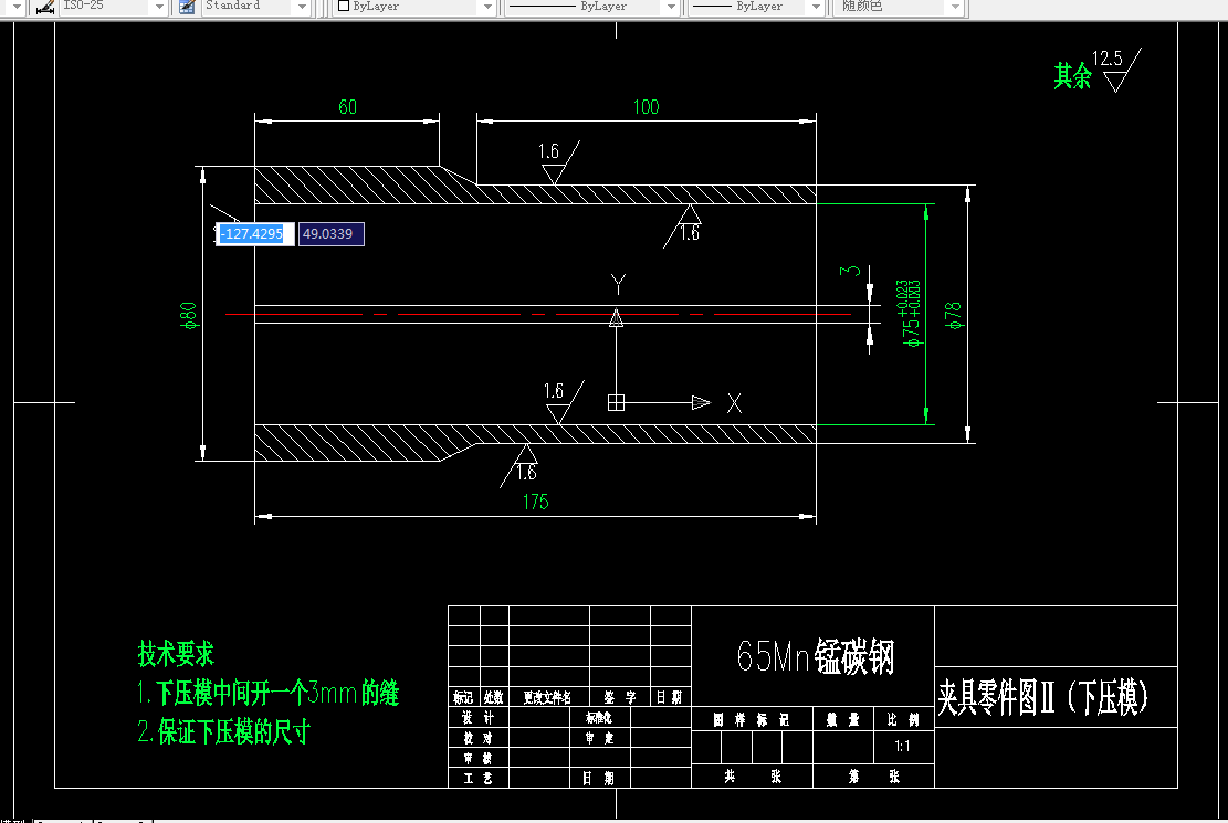摘要:首先,本人设计的零件为输出轴,它的作用是传动作用,传动力的方向和轴力。轴的样式很多,应用的也很广泛,不过本人对于自己设计的轴经过了解,根据零件的形状、尺寸精度、生产的经济效益等各方面的详细分析其加工工艺,采用多工序,机床加工。通过对零件的分析,此轴要求精度高,工序适当集中,要求光滑,所以选用的工具和尺寸要量得准。对输出轴的夹具设计也要求也高,因为精度和公差要求高,表面更要采用磨床钻磨。最后对零件进行校核。以便达到零件精度的要求。