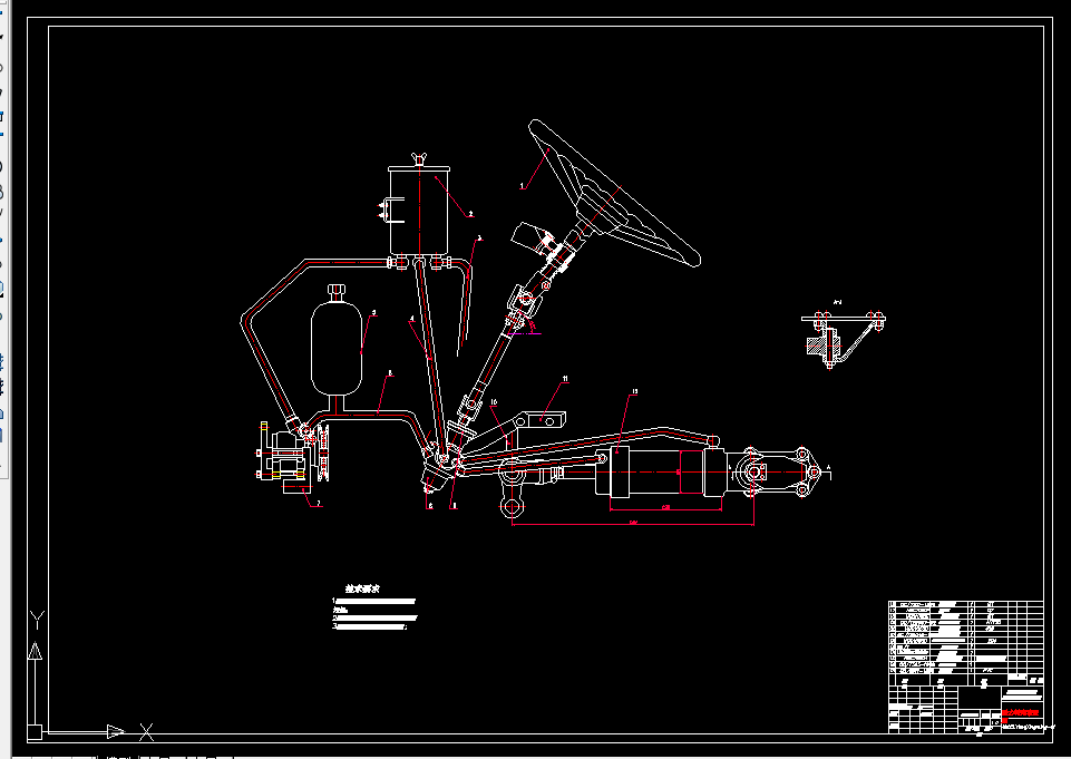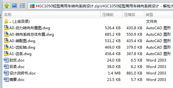 此次是以齿轮齿条转向器的设计为中心,一是汽车总体构架参数对汽车转向的影响;二是机械转向器的选择;三是数据的确定,包括计算转向阻力矩和对转向盘施加的手力、力传动比和角传动比的计算,以满足转向器的正确传动比和强度要求;四是动力转向机构设计,包括动力缸尺寸计算、分配阀的设计以及参数计算。