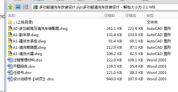 所以设计以多功能清洗车改装设计为题目,设计的主要内容有以下几个方面,确定多功能清洗车的总体设计方案;对二类底盘的计算与选择; 对清洗水罐的选择与设计; 清洗作业平台及清洗装置;对整车的结构及副车架的设计;对多功能清洗车进行整车性能分析。最后所设计出来的是一个以高压清洗车为主洒水、浇灌、降温、防尘等为辅的的多功能清洗车。