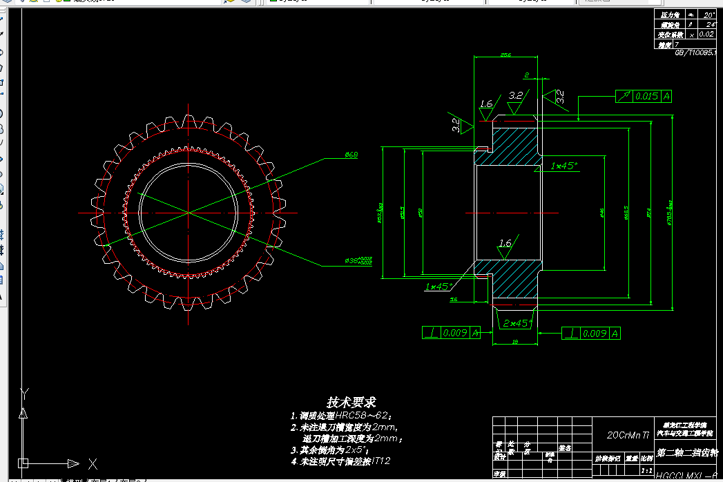 本设计是依据哈飞HFJ6351B的有关参数,通过各部分参数的选择和计算,设计出一个令自己满意的手动变速器。设计的基本内容是:变速器传动机构布置方案,变速器各挡传动比的分配,变速器齿轮参数选择,变速器各挡齿轮齿数分配,变速器齿轮设计计算,变速器轴和轴承的设计计算,同步器和操纵机构及箱体的设计,利用Auto CAD软件绘制装配图和零件图等八项内容。在设计过程中主要需解决的问题有:变速器各参数的确定,变速器齿轮的设计、计算及校核,变速器轴的设计、计算及校核和轴承的校核计算,同步器和操纵机构及箱体的设计以及绘制装配图及零件图五大主要问题。