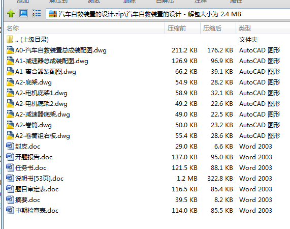 本次设计主要包括对汽车自救装置驱动电动机的选择;联轴器的选择;行星齿轮减速器的设计,计算和校核;卷筒的设计,计算和校核;离合器的选择,钢丝绳的设计,计算和校核。通过比较不同方案和方法选取最佳方案进行设计,对现有传统的汽车自救装置的结构进行改进和完善。