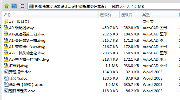 采用中间轴式变速器,该变速器具有两个突出的优点:一是其直接档的传动效率高,磨损及噪声也最小;二是在齿轮中心距较小的情况下仍然可以获得较大的一档传动比。这台变速器具有五个前进档(包括一个超速档五档)和一个倒档,并通过锁环式同步器来实现换档。本设计论述了变速器的总体结构,在设计中完成了各挡齿轮和轴的计算和校核及CAD绘图等工作。