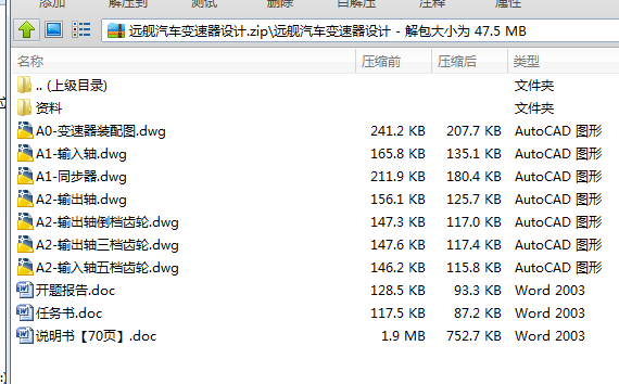 本设计以现有企业正在生产的远舰汽车变速器为基础,在给定发动机输出转矩、转速及最高车速、总质量、车轮滚动半径等条件下,着重对变速器齿轮的结构参数、轴的结构尺寸等进行设计计算;并对变速器的传动方案和结构形式进行设计;同时对操纵机构和同步器的结构进行设计;从而提高汽车的整体性能。