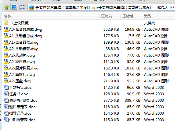 离合器是汽车传动系中的重要部件,主要功用是是切断发动机对传动系的动力传递,保证汽车平稳起步,保证传动系统换挡时工作平顺以及限制传动系统所承受的最大转矩,防止传动系统过载。此设计说明书详细的说明了膜片弹簧离合器的参数选择以及计算过程。