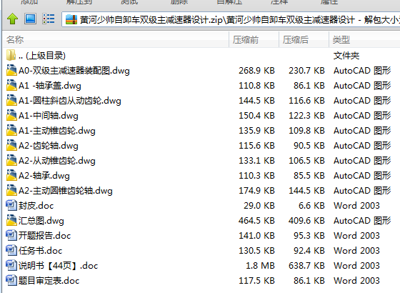 本设计是对载货汽车设计一个结构合理、工作性可靠的双级主减速器。此双级主减速器是由两级齿轮减速组成。与单级主减速器相比,在保证离地间隙相同时可得到很大的传动比,并且还拥有结构紧凑,噪声小,使用寿命长等优点。本文论述了双级主减速器各个零件参数的设计和校核过程。设计主要包括:主减速器结构的选择、主、从动锥齿轮的设计、轴承的校核。主减速器是汽车传动系中减小转速、增大扭矩的主要部件,它是依靠齿数少的锥齿轮带动齿数多的锥齿轮。对发动机纵置的汽车,其主减速器还利用锥齿轮传动以改变动力方向。