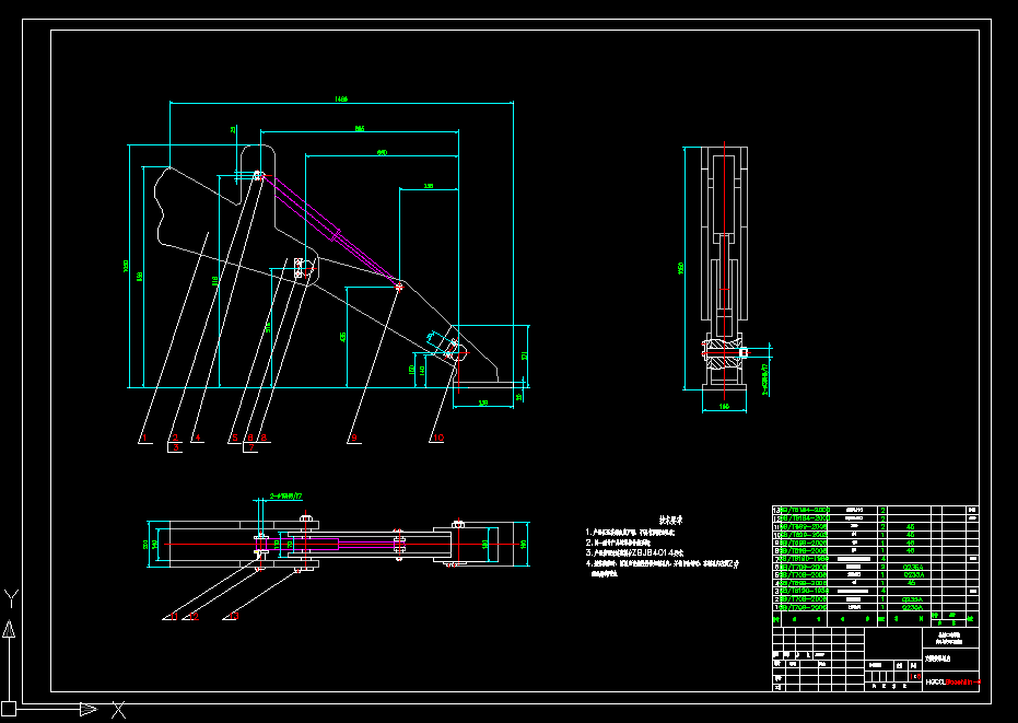 设计依据国家标准和机械行业标准,通过查阅机械设计手册等书籍,利用相关计算公式和材料信息,系统的对机构进行了强度校核,验证了设计的合理性,确定了各零件的使用材料、外形尺寸和加工方法,并完成了整体构架的装配方案,使机构能够实现最大举升达10.79m这样一个高度。