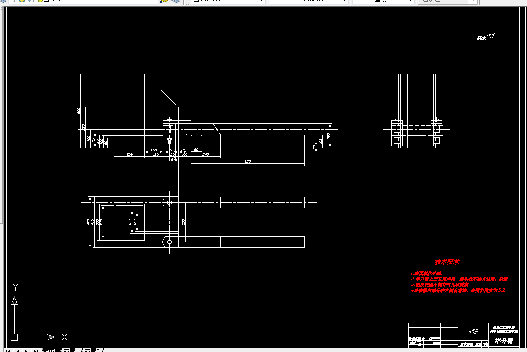 本文首先阐述了双柱式汽车举升机设计的目的和意义、发展状况以及应用前景。分析论证了一种举升承载质量为3.2t的双柱式汽车举升机总体设计方案,进行了举升机构的机械系统、液压系统、电气系统等主要机构的方案分析和选择,并对机械部分进行了运动分析以及强度和刚度的校核计算,对液压系统进行了设计和计算。本课题基于计算机仿真平台,应用当前CAD/CAE领域应用比较广泛的二维软件AutoCAD进行绘图。