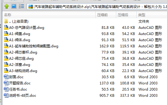 档机动车的半坡起步辅助气动系统。包括确定起车斜坡起步辅助系统组成,确定各气动元件,根据辅助系统的工作要求对气动控制阀的结构进行设计,包括主阀芯的结构、密封件的结构等。