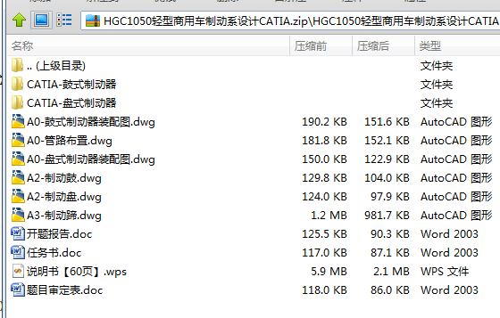 本文系统详细的介绍了汽车制动系的结构型式及其主要构件的设计计算,阐述了制动器的两种结构型式及选择和各自的工作原理、制动系的主要参数及其选择、制动器主要零部件的结构设计和分析计算、制动驱动结构的结构型式选择与设计计算、制动力分配的调节装置等。其中重点介绍了汽车车制动系的主要构件——浮钳盘式制动器、领丛蹄式制动器的分析计算。在绘制二维AUTOCAD图纸的基础上,为更形象表达制动器的结构,还运用CATIA绘图软件,绘制了三维图形和爆炸图。