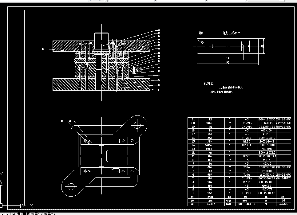本文应用所学到的理论知识,分析了垫片的结构和成形工艺,计算了毛坯尺寸和冲压力。为了提高垫片的生产效率,设计了级进模的结构,经过工艺分析、结构设计,论证了其可能性,保证了制品的质量。在模具设计中,为了提高速度和效率,充分利用已经掌握的知识和资源。利用冲模设计手册软件版快速设计冲压模具。实践证明,确实提高了设计的速度和效率。本模具设计中,由于卸料力较大,采用了组合弹簧力较大的优点解决了这一问题。在模具结构中,用顶板做凸模的定位元件,由于配合定位的距离小,容易造成凸模的折断,因而设计了凹模导向凸模,增强了凸模的强度。