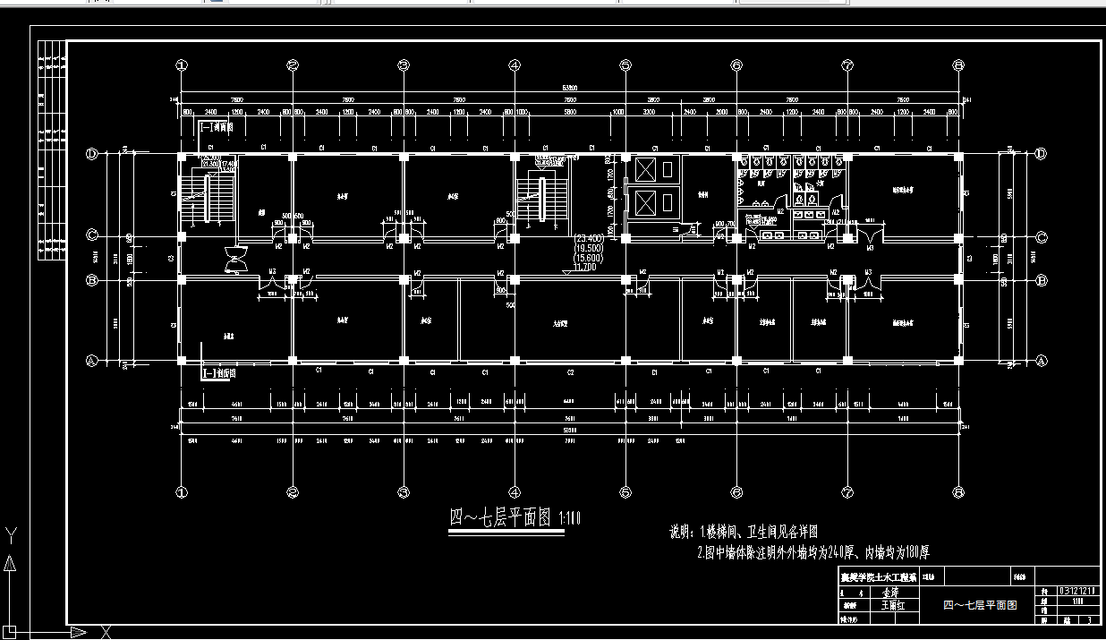 本设计为保险公司七层办公楼的设计,7度抗震,建筑面积7680m2,在结构上,由建筑高度与使用要求采用框架结构;基础采用柱下独立基础,一条柱子下一个基础。