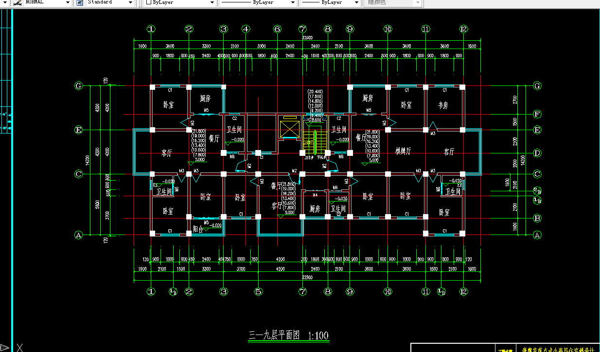 结构设计主要是竖向荷载作用下的框架计算和水平荷载作用下的地震作用计算,内力组合,梁柱配筋,楼梯计算,基础计算.
