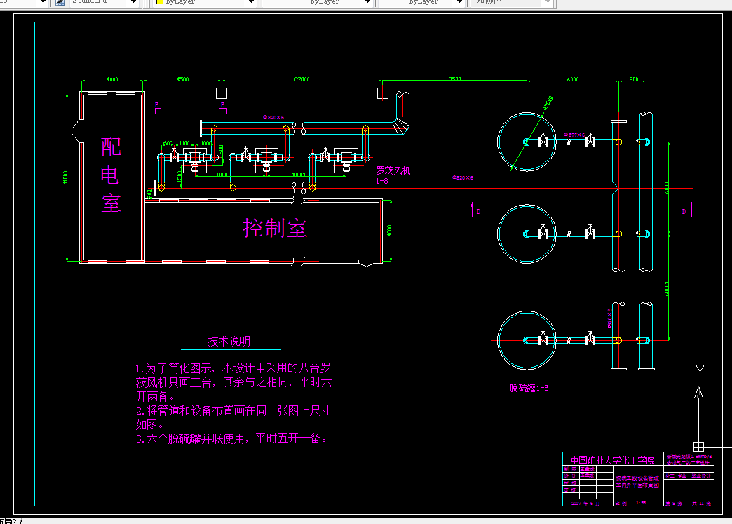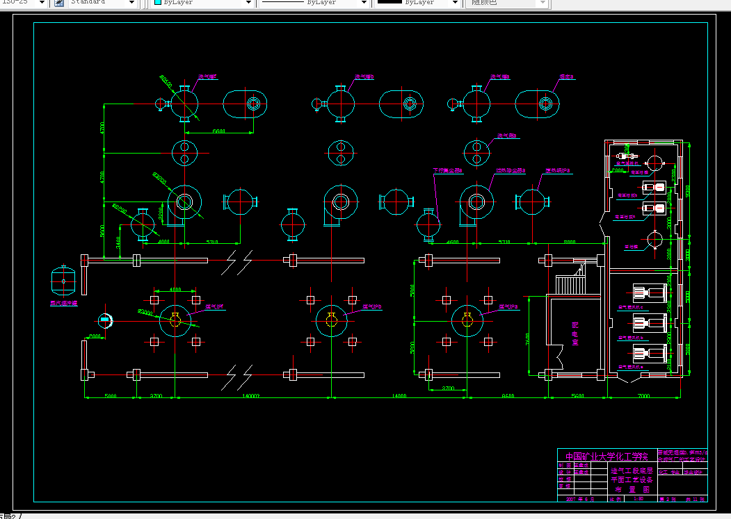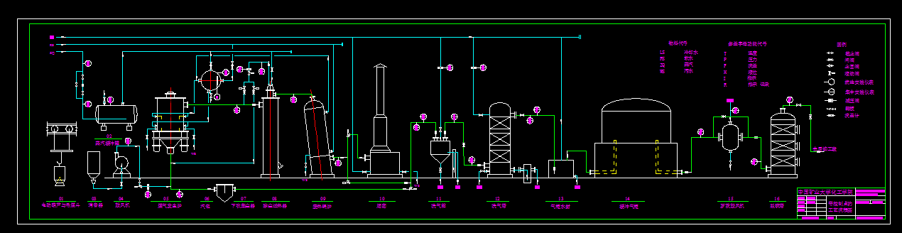 (3)分别用手工和CAD绘制图纸,包括总平面布置图、带控制点的工艺流程图、工艺管道布置图和设备图;