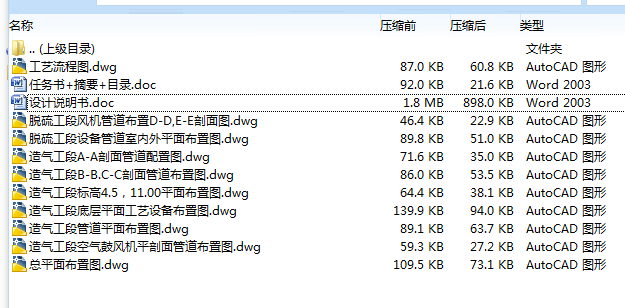 本设计共由六部分组成:设计总论,工艺计算,主要设备选型和计算,设计文字说明部分,工程概算,设计图纸(共10张)。