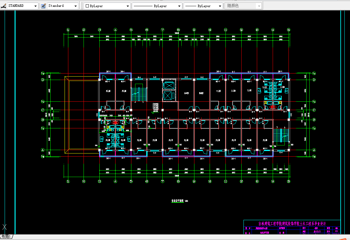 本设计主要进行了结构方案中横向框架的抗震设计。在确定框架布局之后,先进行了层间荷载代表值的计算,接着利用顶点位移法求出自震周期,进而按底部剪力法计算水平地震荷载作用下大小,进而求出在水平荷载作用下的结构内力(弯矩、剪力、轴力)。接着计算竖向荷载(恒载及活荷载)作用下的结构内力,。 是找出最不利的一组或几组内力组合。 选取最安全的结果计算配筋并绘图。此外还进行了结构方案中的室内楼梯的设计。完成了平台板,梯段板,平台梁等构件的内力和配筋计算及施工图绘制。