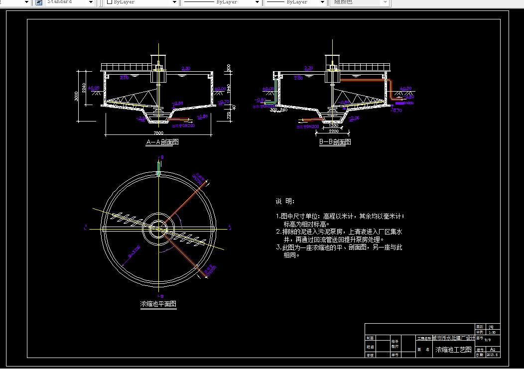 设计规模:近期5×104m3/d,远期5×104m3/d,污水处理厂总规模达10×104m3/d。