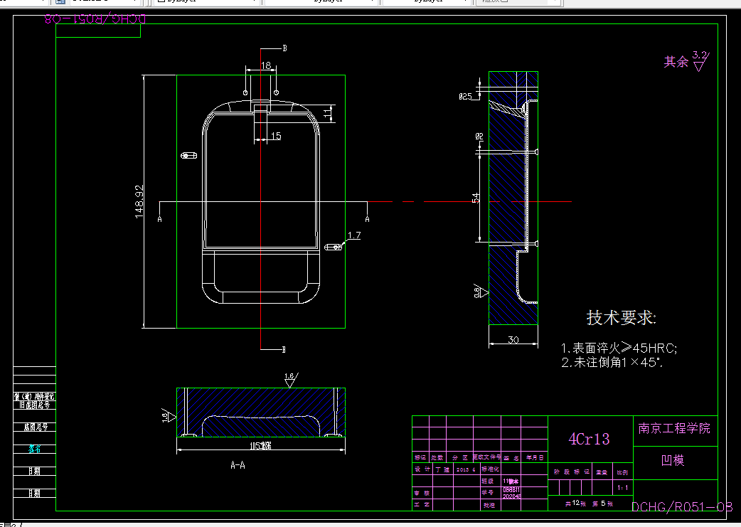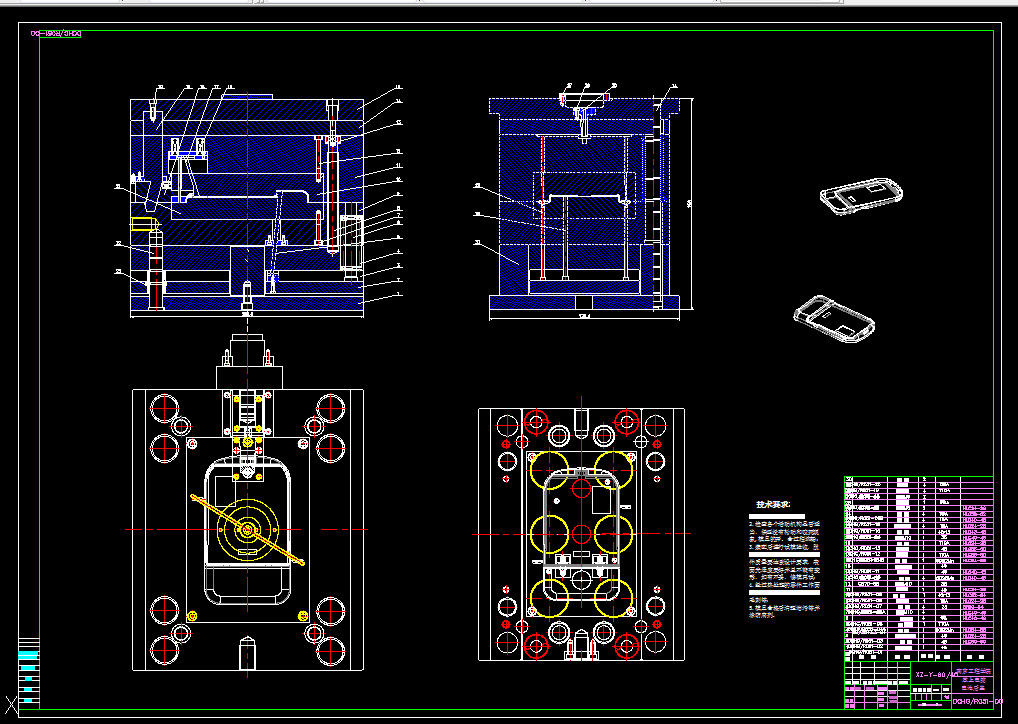 掌上电脑电池后盖注塑模设计,具有复杂的曲面,要求有良好的外观质量。因此,分型面,浇口的位置要选择适当,需要借助UG软件进行分模设计,并完成模具的2D总装图和若干零件图的绘制。