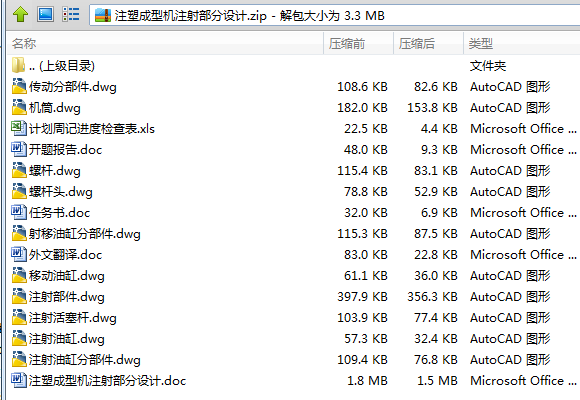 本论文的内容主要为注塑机注射部分的设计,有关各章节内容分述如下: