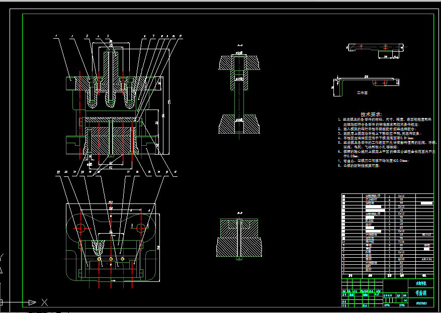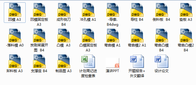 关键词:冲孔模、落料模、弯曲模、尺寸、冲裁模、装配图