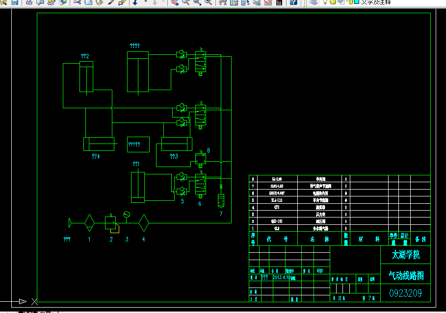 气动系统[2]的设计是设备控制与运行设计的重要内容。根据机电设备对液压、气压系统的具体要求,利用气动传动的基本原理,拟定合理的气动系统图。气压传动是利用空气压缩机将电动机或其他原动机输出的机械能转换为空气的压力能。在控制元件的控制和辅助元件的配合下,通过执行元件把空气能转换为机械能,从而完成直线或回转运动并对外做功。