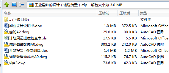 此次设计的论文题目是《工业窑炉的设计(输送装置)》。选择输送装置方向的毕业设计题目完全符合本专业的要求,从应用性方面来说,输送装置又是很多机器所必不可少的一个部分。有效保证输送装置的功率及稳定性能够达到设计的要求,具有很好的发展前途和应用前景。带式输送机是胶带兼作牵引机构和承载机构的一种机械设备,因此本课题研究带式输送机的工作原理,以及整体机械中的零件尺寸计算、选用标准和强度校核,必须要求学生要有良好的心理素质和仔细认真的作风,对学生也是一次很好的练习机会。根据题目要求和机械设计的特点做了以下几方面的工作:①选择适宜的带式输送机的总体设计方案;②选择电动机并计算传动装置的运动和动力参数;③传动零件以及轴的设计计算,轴承、滚动轴承、键、联轴器的选择及校验计算;④绘制减速器装配图及典型零件图;⑤编写一份分析明晰,计算正确,阐述清晰的设计说明。