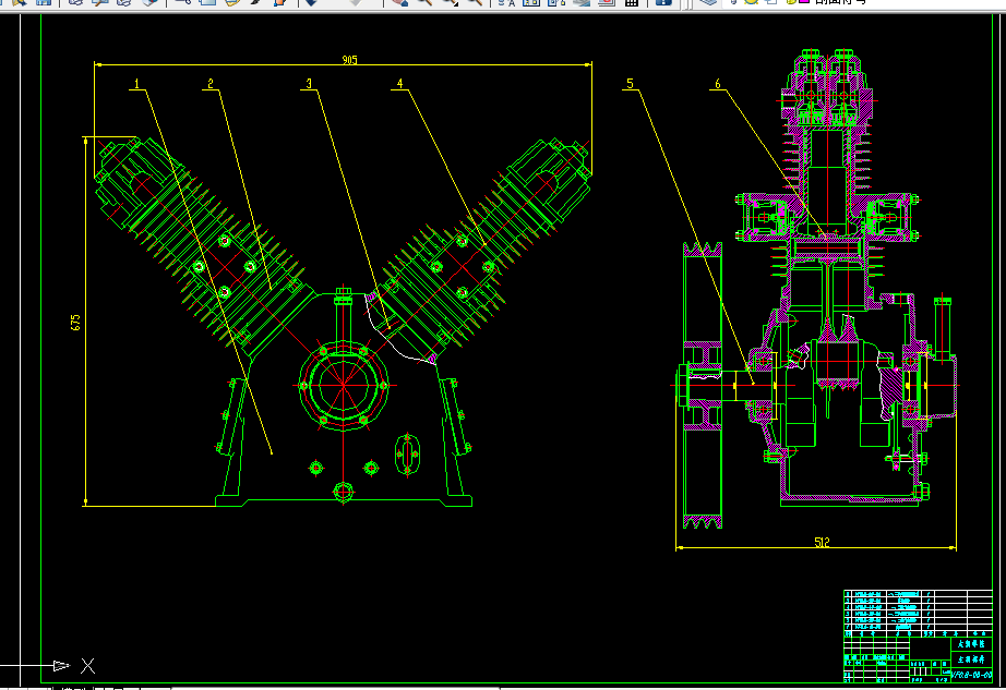 本次设计的为角度式V型压缩机,分为两列,其中一列为一、二级气缸压缩,另外一列为一、三级气缸压缩,两列夹角为90°,平衡性达到最佳。活塞式压缩机是利用活塞在汽缸中往复运动使容积缩小而提高气体浓度、压力的。相比于其它形式的压缩机有许多优点,如:效率高;适应性强,特别是用于排气量小的情况;涉及的压力范围广,低压和高压都适用。在实际的生产、生活中,此型号的压缩机的应用范围比较广泛。