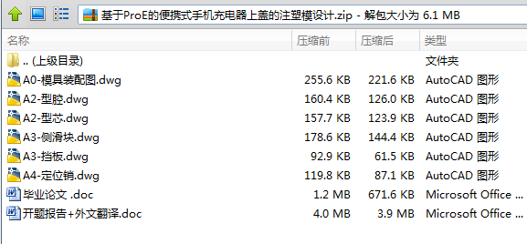 本课题研究的是便携式手机电源充电器上盖注塑模设计。本设计对手机电源充电器上盖零件进行了工艺分析,确定了手机电源充电器上盖的分型面及成型方法。塑件的材料采用ABS,同时根据生产纲领,设计了一模两腔的注塑模具,然后重点阐述塑料手机电源充电器上盖零件注塑模的主要内容部分,主要有:根据年产量等确定型腔数目及校核,注塑机类型和规格选择及有关工艺参数的校对,浇注系统的设计,成型零件设计,脱模机构设计,导向机构设计,侧抽芯机构,冷却机构设计以及排气系统设计。并对模具结构与注塑机的规格进行了匹配校核。完成便携式手机电源充电器上盖板的注塑模具总体装备结构设计和相关主要零件的设计。