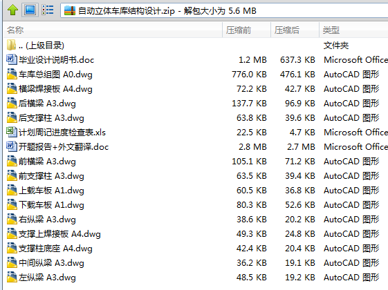 本次设计的主要内容是自动立体车库的结构设计。而自动立体车库按结构可分为升降横移类、垂直循环类、水平循环类、平面移动类、巷道堆垛类、垂直升降类、简易升降类等。本文主要对两层式升降横移自动立体车库进行详细的结构设计和对关键部位受力分析并校核。