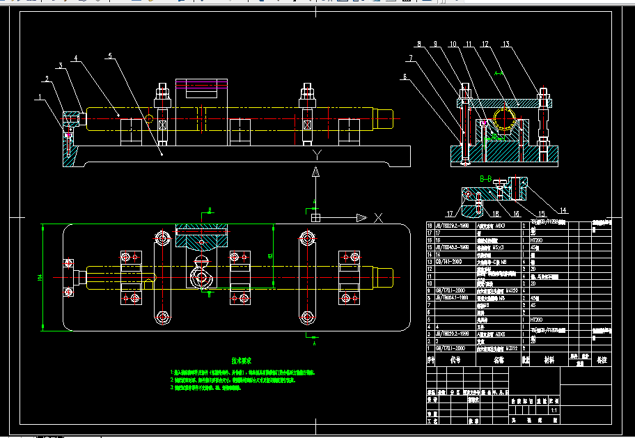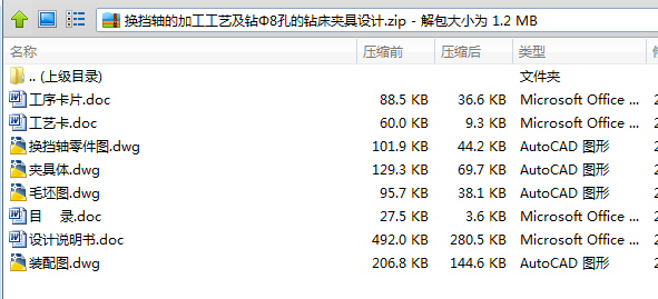 换挡轴加工工艺规程及钻Ф8孔的夹具设计是包括零件加工的工艺设计、工序设计以及专用夹具的设计三部分。在工艺设计中要首先对零件进行分析,了解零件的工艺再设计出毛坯的结构,并选择好零件的加工基准,设计出零件的工艺路线;接着对零件各个工步的工序进行尺寸计算,关键是决定出各个工序的工艺装备及切削用量;然后进行专用夹具的设计,选择设计出夹具的各个组成部件,如定位元件、夹紧元件、引导元件、夹具体与机床的连接部件以及其它部件;计算出夹具定位时产生的定位误差,分析夹具结构的合理性与不足之处,并在以后设计中注意改进。
