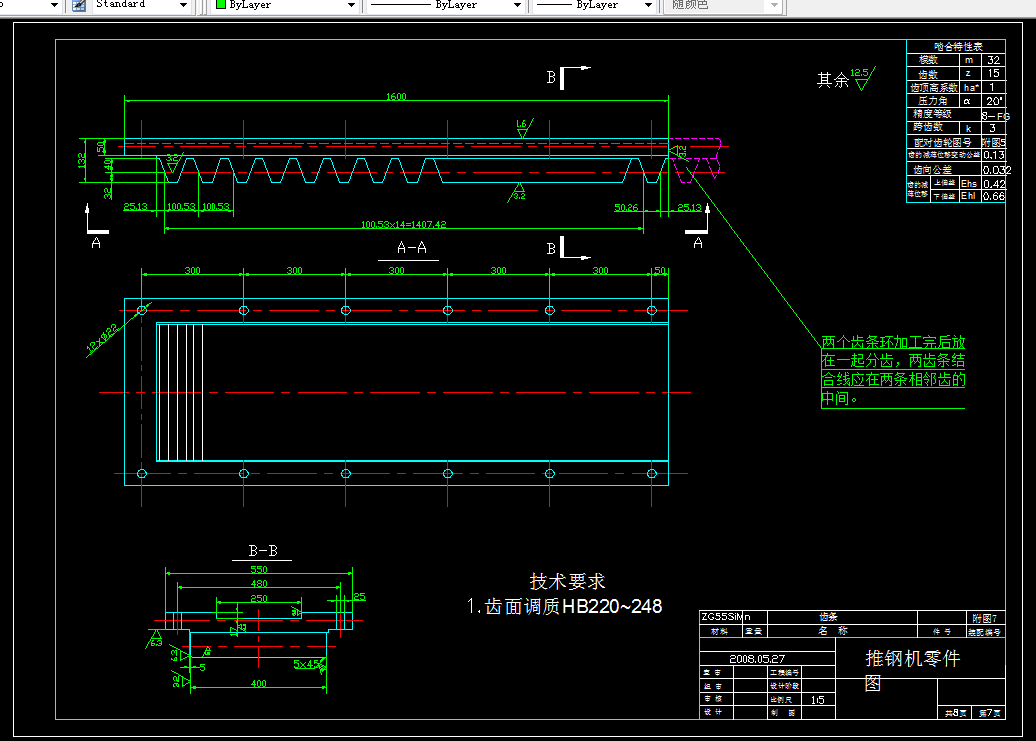 推钢机是轧钢车间上料区主要设备之一,其作用是将加热炉前辊道上的钢坯或炉前上料台架上的钢坯推入加热炉进行二次加热过程。本设计选用了机械式推钢机,在推钢机结构设计上主要采用了齿轮齿条的结构形式。该机构具有结构简单,整体尺寸适中,传动效率高,维修方便,造价较低的优点。在本设计中主要对推钢机进行了结构设计和理论计算,并着重对传动机构做了详细的分析设计。