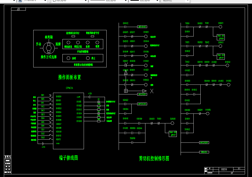 其次是PLC控制方面的设计,包括钢板传送运动数学模型的建立、操作面板的设计、气压回路的设计、梯形图的设计等。介绍了钢板定长切割的PLC系统的工作原理,给出了详细的程序设计过程。该系统可以实现连续操作和手动操作。连续操作能自动完成钢板剪切的各个动作,提高的剪切机的效率。手动操作为实现自动操作做准备,即将钢板停到合适的位置。