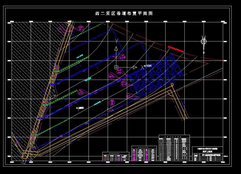 设计首采区为西二采区,该采区采用单翼布置,共划分为3个区段,区段斜长为250m。采用上山布置,下部车场采用顶板绕道式,中部车场采用甩入石门式,上部采用平车场。