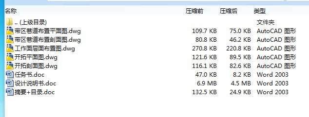 一般部分共包括10章:1、矿区概述与地质特征;2、井田境界和储量;3、矿井工作制度、设计生产能力及服务年限;4、井田开拓;5、准备方式——带区巷道布置;6、采煤方法; 7、井下运输;8、矿井提升;9、矿井通风与安全;10、设计矿井基本技术经济指标。