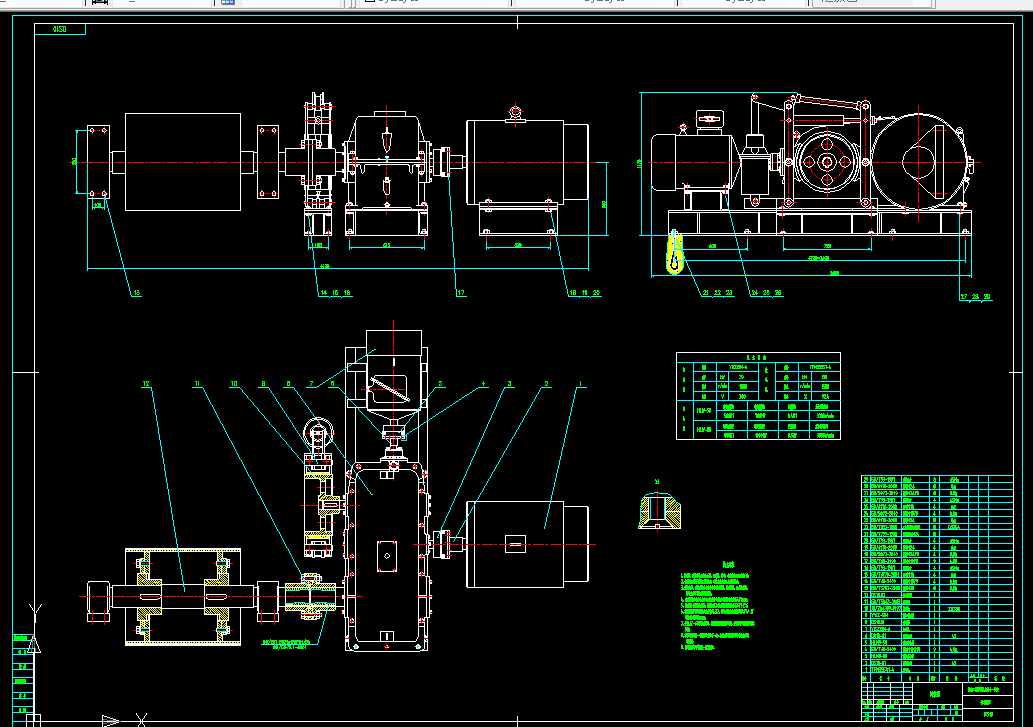 本次设计的重点是传动系统的设计。所设计传动系统由电动机、发电机、离合器、制动器、联轴器和传动滚筒六部分组成。考虑到井下空间上的限制,将制动系统与驱动系统设计成一体,共用一个变速机构,以节省空间。同时,根据相关参数对输送机其他部件进行了选型设计,完成了输送机的整机设计。