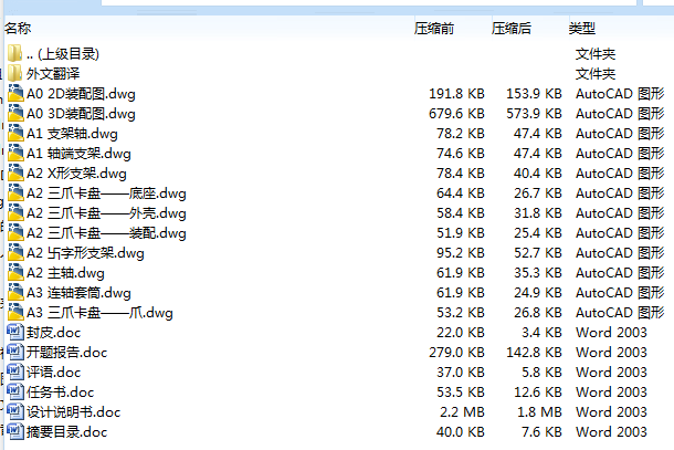 2、若题目上备注三维,则表示文件里包含三维源文件,由于三维组成零件数量较多,为保证预览截图的简洁性,本站将三维文件夹进行了打包。三维及CAD预览截图,均为本站电脑打开软件进行截图的,保证能够打开,下载原件超高清,下载后解压即可;