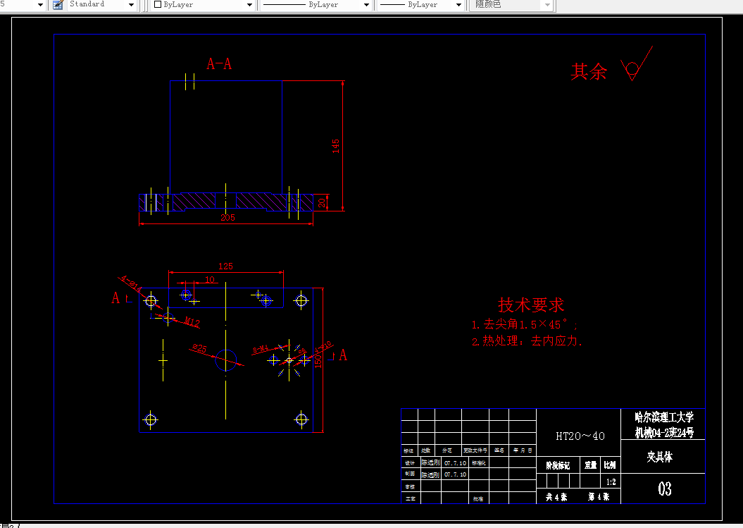 4.绘制夹具的非标准零件图。(要求计算机绘图)