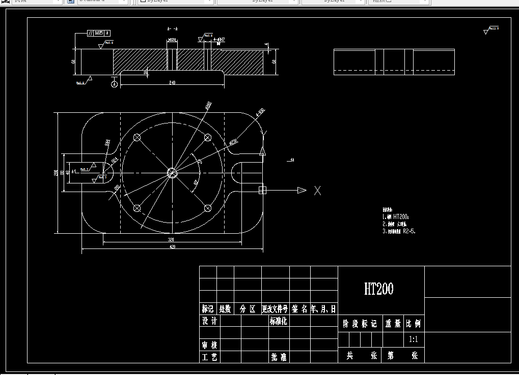 设计内容: 1、绘制加工工件图,计算机绘图;