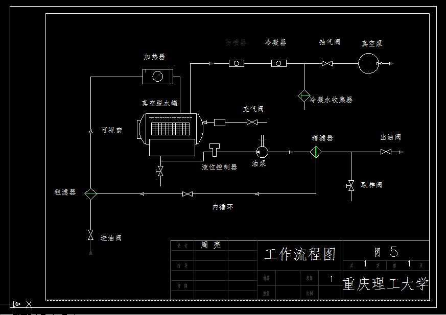 鉴于此,本文提出一种润滑油净化装备——润滑油脱水净化挂车的设计方案,通过对净化挂车主要结构的设计,包括真空泵、粗过滤器、加热器、真空罐、精过滤器、油泵、冷凝器等部件的设计、计算及选型,最终形成润滑油脱水净化挂车装配总图。