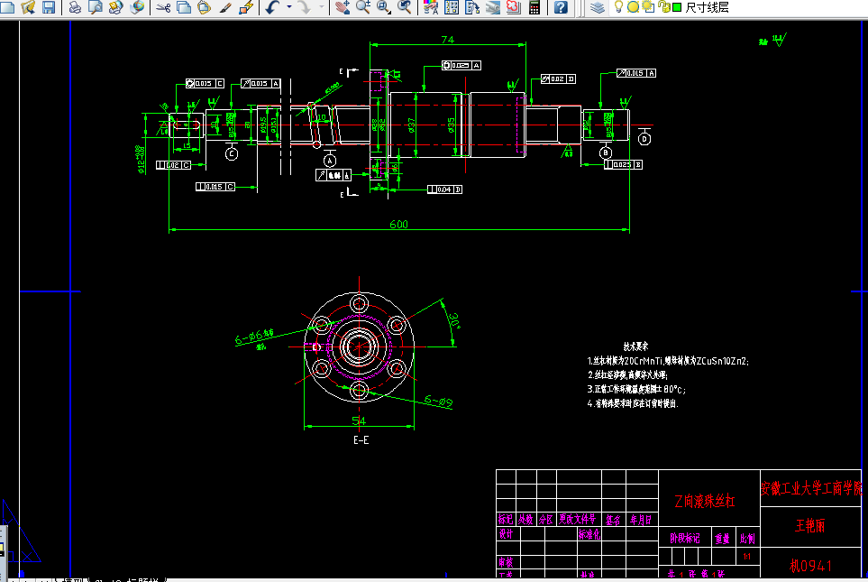 整个设计通过对这些传动机构的分析与计算数据,并通过查阅机械设计手册以及自己从图书馆借的各种零件选择手册,选出对整个传动系统设计最合理最简单最优化的传动机构的型号,并通过CAD制图绘出整个传动装置的装配图和各部分零件的图纸,通过计算得出这些数据,使我能够准确的设计出符合要求,符合规范的传动机构。