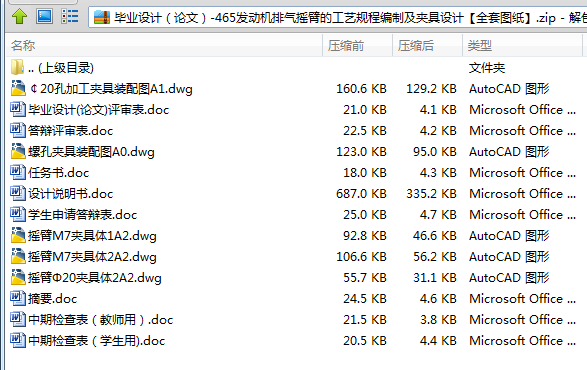 此次设计是对465发动机排气摇臂的加工工艺和夹具设计,其零件为铸件,具有体积小,零件复杂的特点,由于面比孔易加工,在制定工艺规程时,就先加工面,再以面为基准来加工其它,其中各工序夹具都采用专用夹具,特别的对于加工大头孔、槽和钻小头孔斜面小孔的工序中,选一面两销的定位方式,并以操作简单的手动夹紧方式夹紧,其机构设计简单,方便且能满足要求。