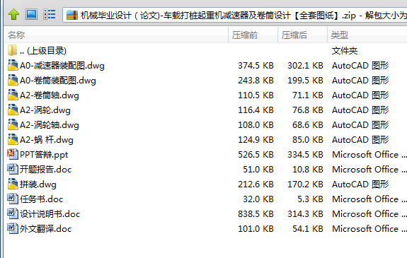这篇论文设计的是打桩机起重装置。它集机械设计最新理念、铸造工艺最新技术及CAD、CAM于一身,是将最新设计技术、CAD、CAM应用于实际的一个实例。文中涉及了蜗杆减速器和卷筒装置的设计、计算和校核,以及后期三维建模的相关内容。
