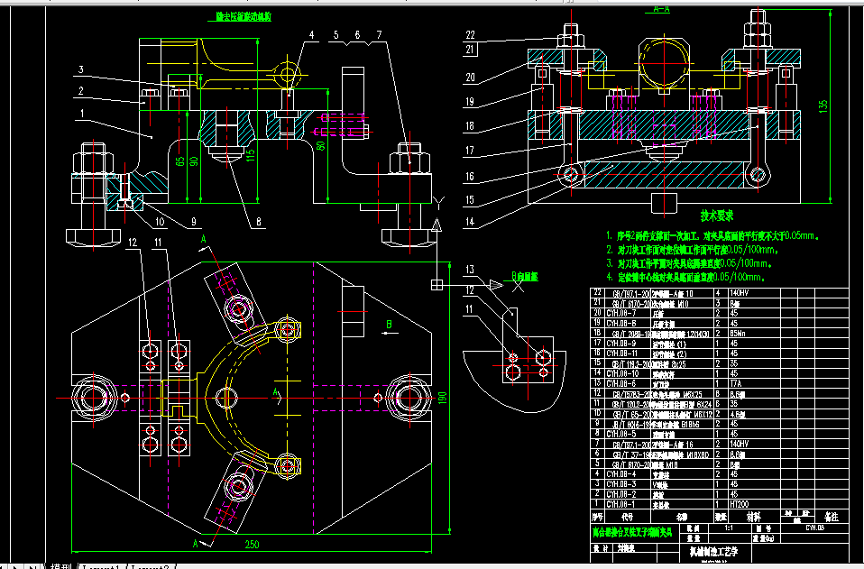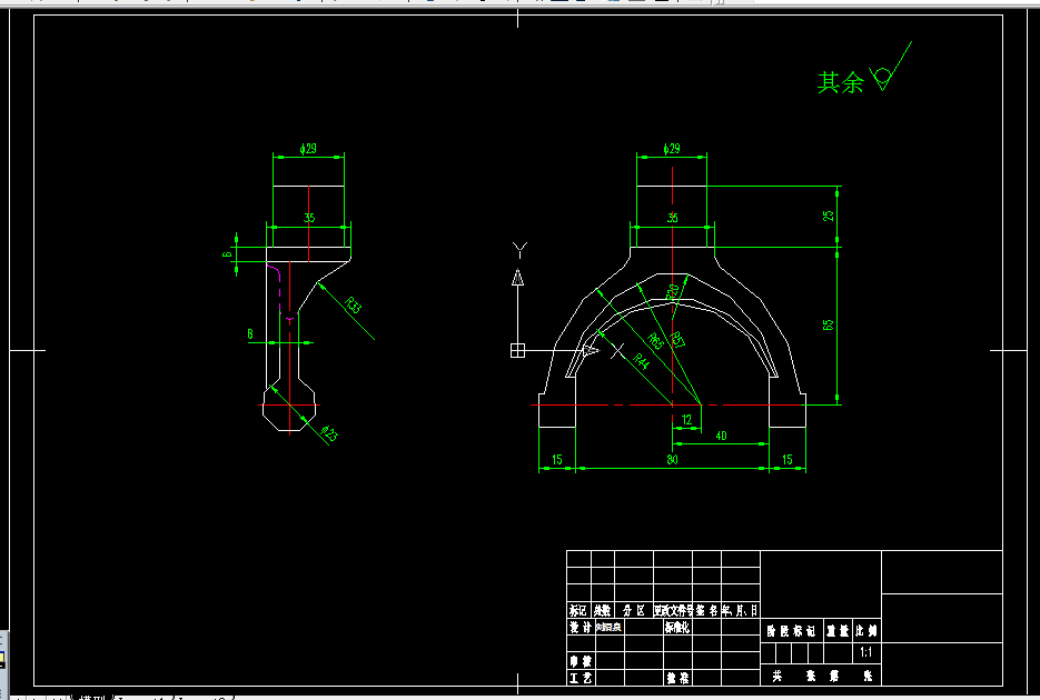 本次设计主要内容:设计离合器接合叉加工工艺及夹口端面铣削夹具工艺装备并绘制出支架零件图、毛坯图、夹具装配图,填写工艺卡片,编制课程设计说明书。