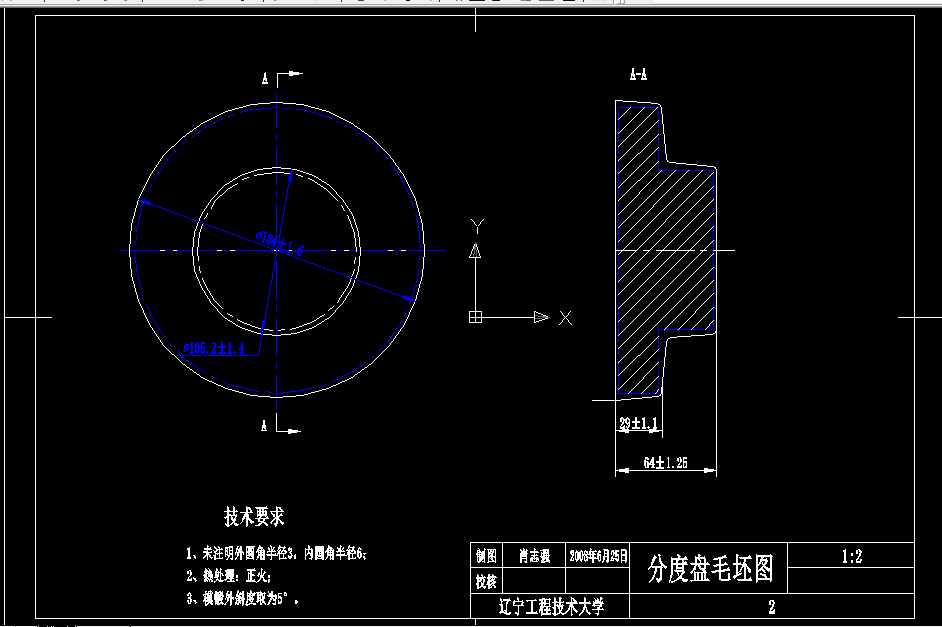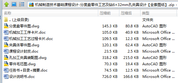 本课程设计是重要的实践教学环节之一。通过对“分度盘”零件的机械加工工艺规程及工艺装备的设计,完成了从毛坯到零件的机械加工工艺过程。本课程设计的主要内容包括:绘制“分度盘”的零件图、毛坯图,编制机械加工工艺过程综合卡片和机械加工工序卡片,以及6× 32mm孔加工夹具设计。本次课程设计实现了所学理论与生产实践的结合,通过设计使学生具有了制定工艺规程的初步能力,设计专用夹具的初步能力,进一步提高了查阅资料,熟练地使用设计手册、参考资料等方面的能力。通过设计全过程,熟悉了工艺计算方法,学会了进行工艺设计的程序和方法,对于培养独立思考和独立工作的能力大有裨益。