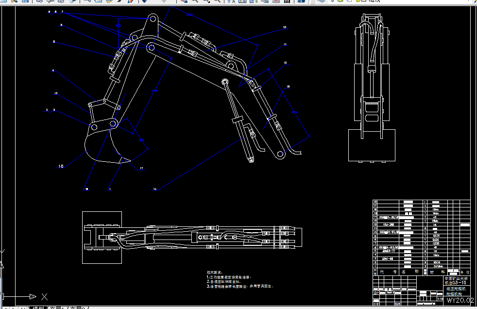 本次设计的主要参数是斗容量0.2m3,它属于中小型液压挖掘机,主要设计挖掘机的工作装置、液压传动原理。