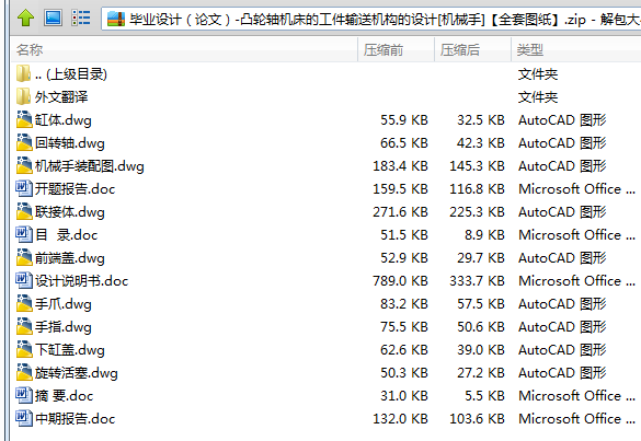 在现代企业生产过程中,生产线零件的输送是非常重要的工作之一,随着生产自动化的发展,目前,这一工作已由机械手的自动搬运逐渐替代传统的人工完成。机械手的出现在减轻工人劳动强度和难度、提高工作效率和质量、降低生产成本上做出了突出贡献,机械手的发展在企业的发展和创收上起到了举足轻重的作用。机械手是模仿着人手的部分动作,按给定程序、轨迹和要求实现自动抓取、搬运或操作的自动机械装置。工业机械手是近几十年发展起来的一种高科技自动生产设备。本课题设计一种在七工位凸轮轴加工机床上应用的机械手,用于实现工件的输送。明确机械手的功能、技术参数、工作原理、主要结构及特点。要求结构简单、抓取重量大、开合行程长、运行可靠,从而提高生产效率。
